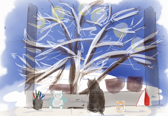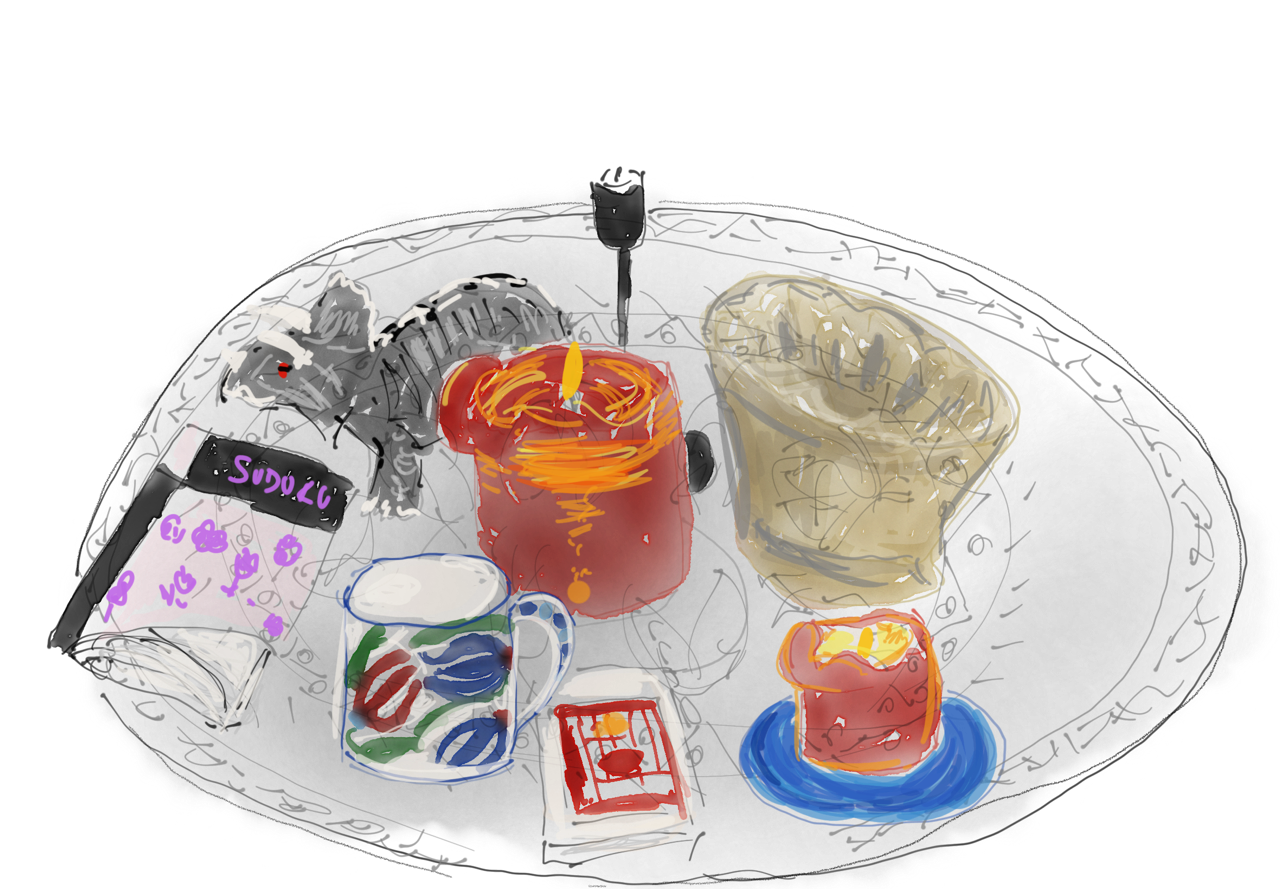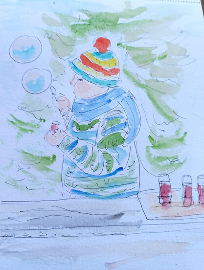 #SundaySketch Bubbles in the garden , view from the balcony with blanket . I used a tiny bit of my Earl grey rooibos as water cause I was too lazy to go fetch some from the kitchen .
