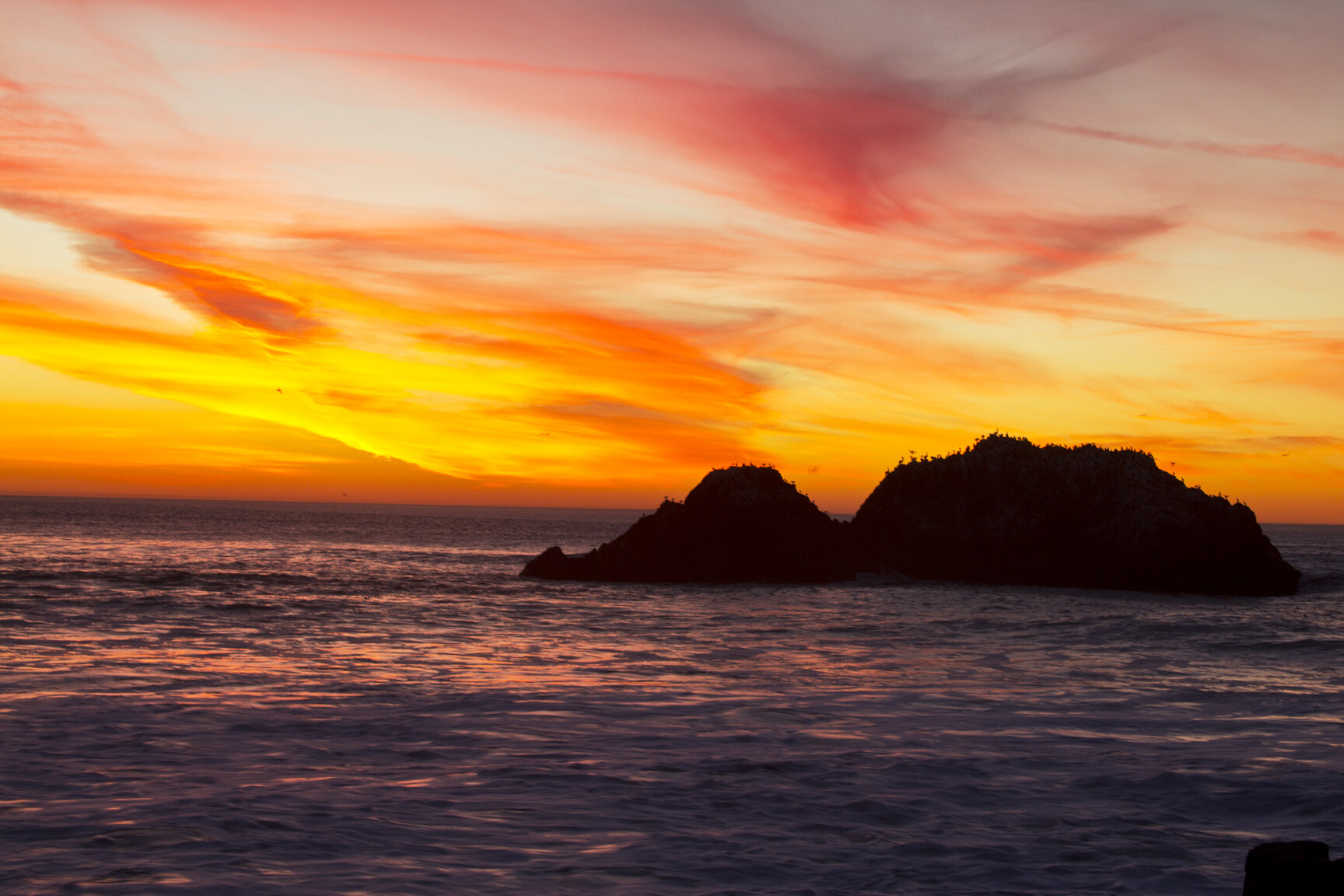 If you're ever in San Francisco, a sunset at Sutro Baths is a must-do. If you get lucky, the sky catches fire. If you're unlucky, it's still a gorgeous sunset.