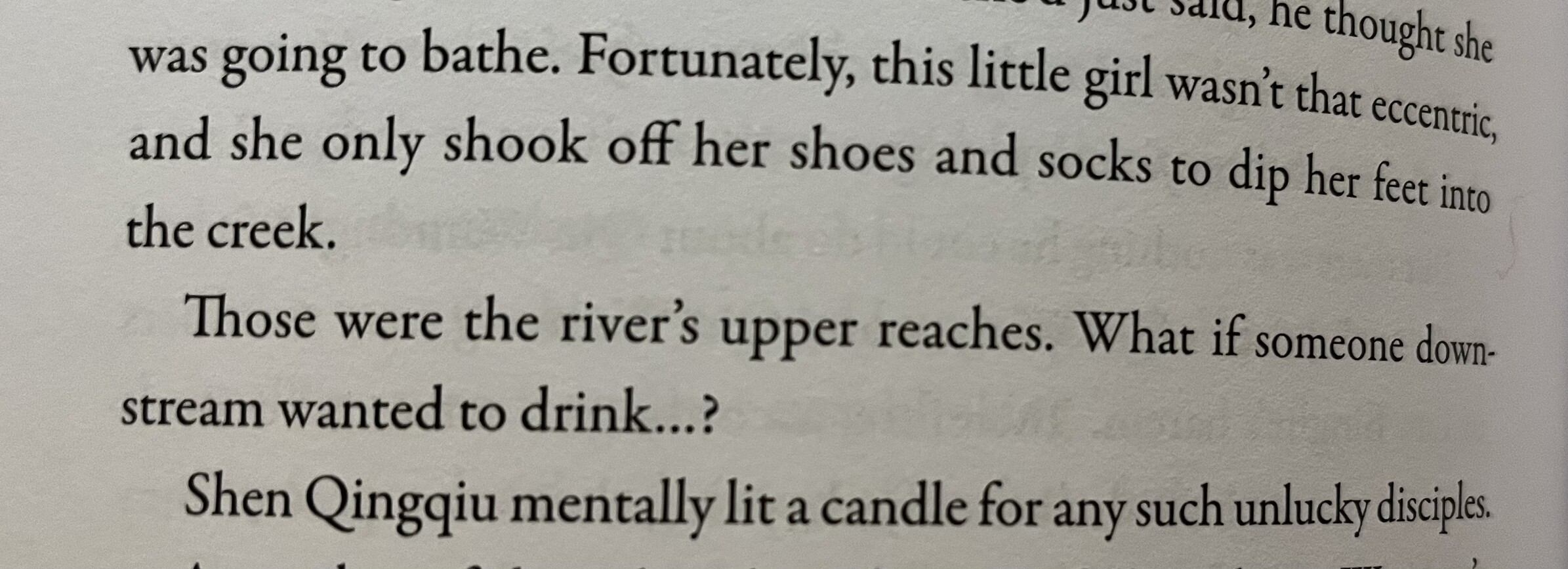 Last thing I remember reading and wanted to comment about is right when SQQ "dies"... Ming Fan shouts "Who killed him?!" and everyone turns to LBH, and although LQG tells the disciples that neither they nor he can defeat Binghe, they all draw their swords...