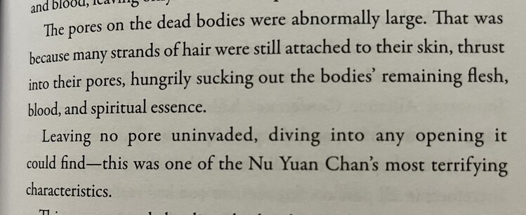 "Great Master, you call this “a bit uncomfortable”?! The place that should have been Wu Chen’s thighs had thoroughly festered, the skin necrotized, into a mass of rotten flesh."