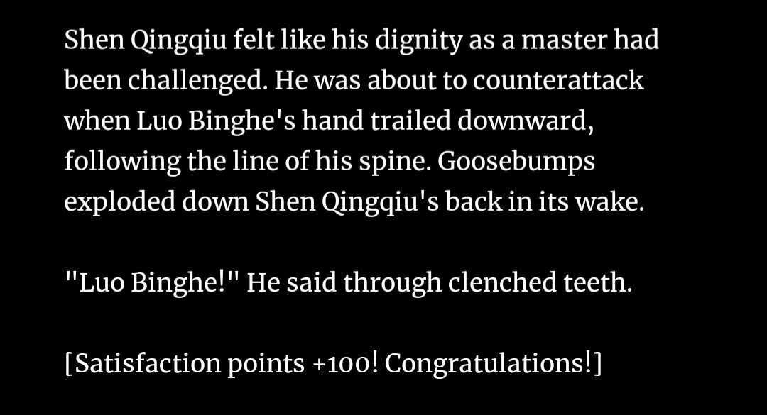 Fighting as foreplay sounds better than getting shot at really. And the memory of a little Luo Binghe pretending to be bad at training just so he could fall into Shizun's arms 🤣 And then getting embarrassed when he gets called out for being bad lol. A+ for effort though!