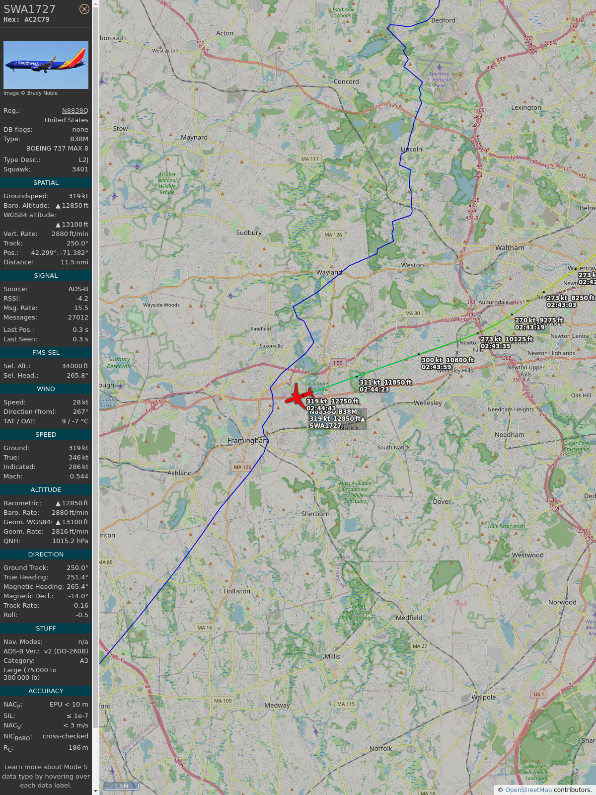 #a51b58 #swa1727 #southwestairlines #okc #dca #planefence #adsb