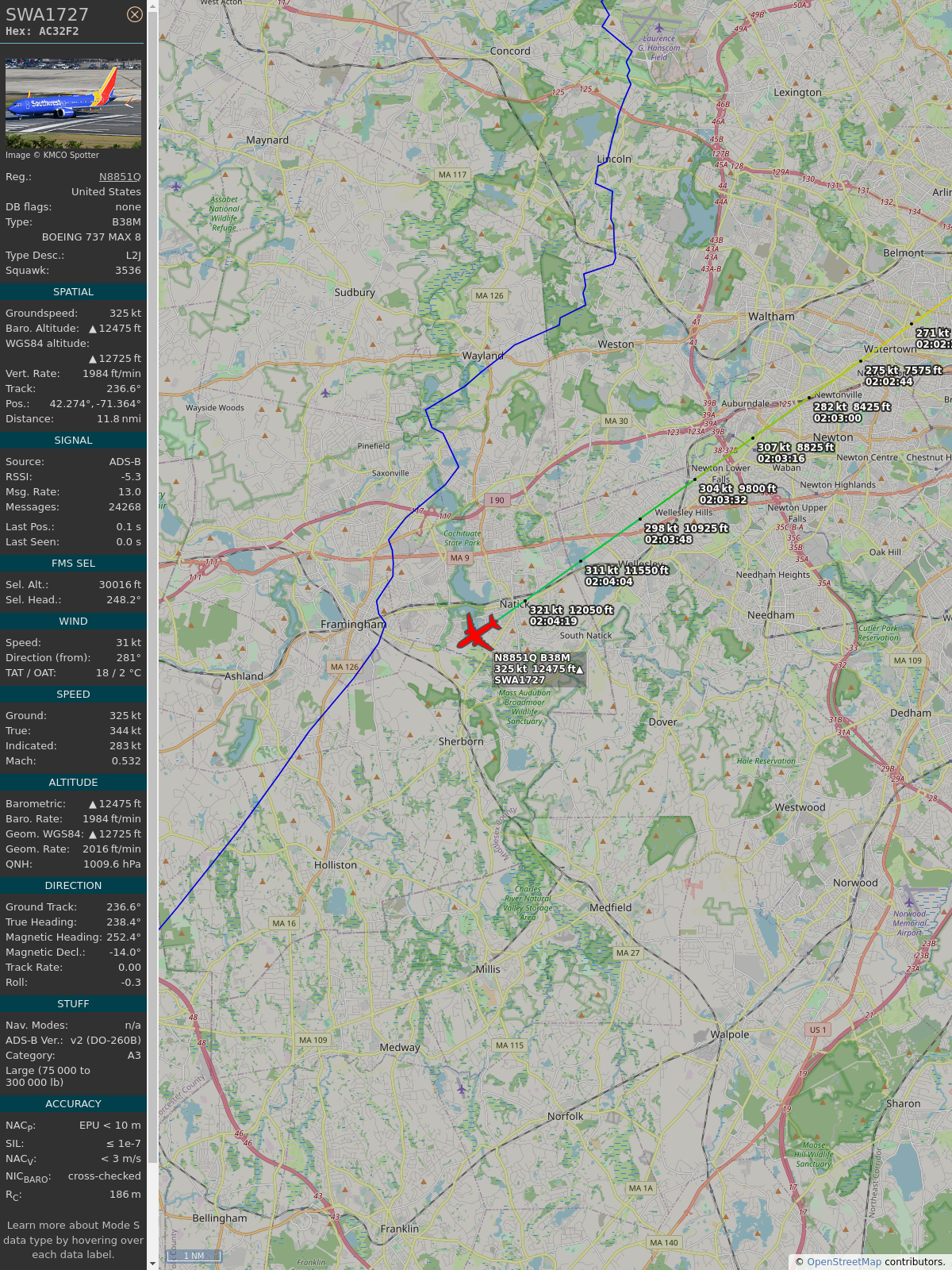 #ac32f2 #swa1727 #southwestairlines #okc #dca #planefence #adsb