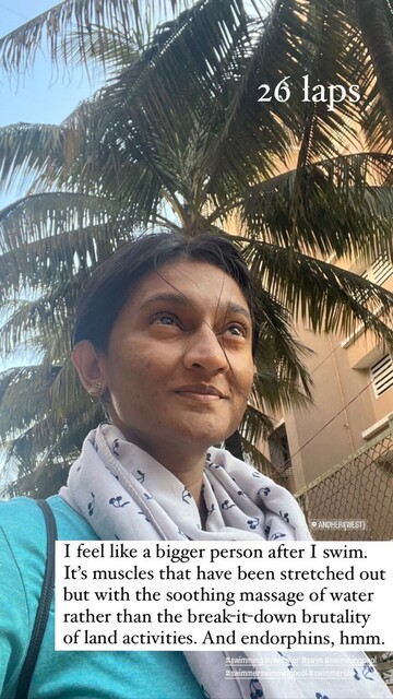 What a great swim! I ate 4 hours before & I’m amazed at how much more energy I had, more limber I was. 26 laps today, no gasping for breath, no shivering in the water. #SwimLife