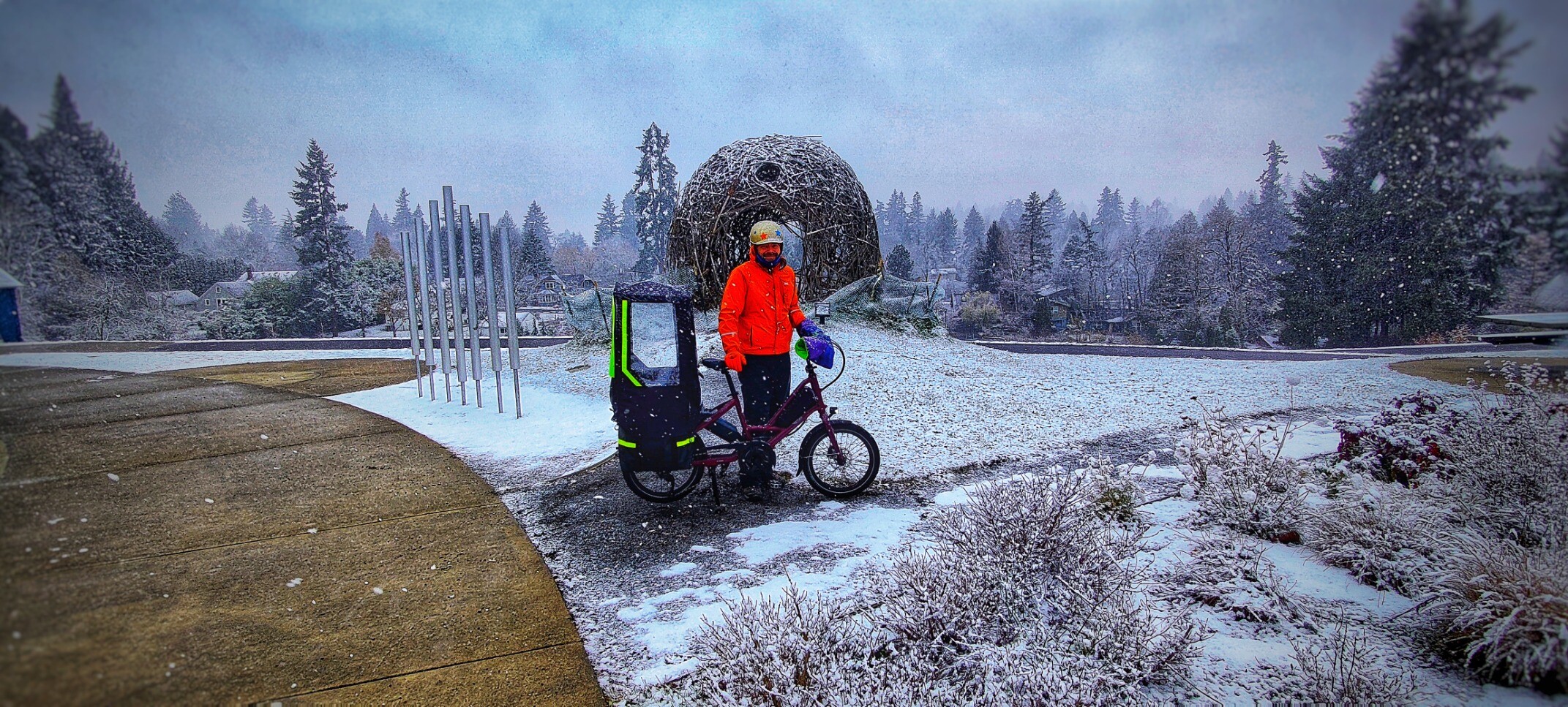 Hello Mastodon friends! I recently changed servers and I *believe* that I brought my followers with but I had to re-follow you all. (I'm still figuring out this 🐘site.) Here's a pic from last week's snow dusting! #eBikes @ternbicycles #PDX #SWportland #Bamboo #cycling