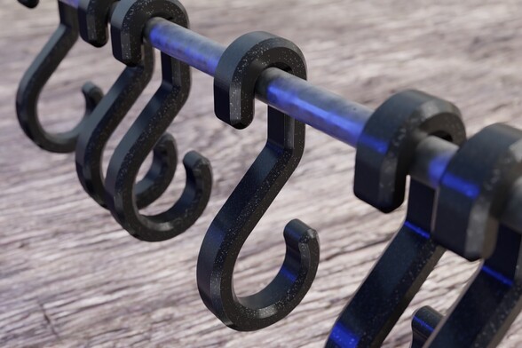 The hook is a very easy-to-print model with no supports required. I created various sizes to match most clothing rails and thicknesses and heights for the look you like.