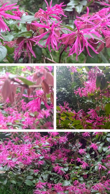#GoodMorning fedifolks! It's a grey sky with occasional showers here in #Sydney, but my favourite spring-flowering shrub is a riot of colour so that's cheery at least. I wish I could remember its name - only flowers for about a month, but small dark green-bronze leaves the rest of the year still an attractive plant.