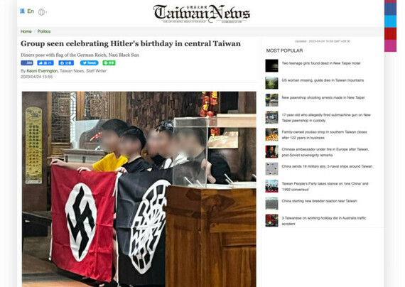 #TaiwanNews has removed an article detailing a group of #Taiwanese people celebrating #AdolfHitler's birthday and displaying #Nazi flags at a restaurant in central Taiwan on Thursday (April 21), without providing any statement or explanation for the deletion.