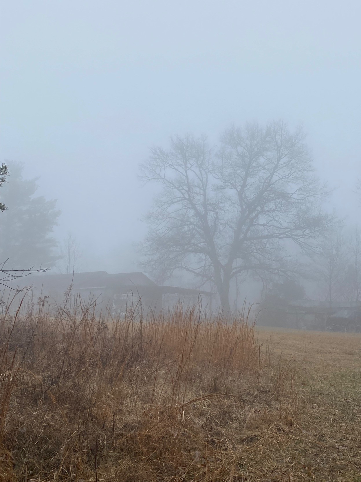 Fog in the woods is magic. I took a ton of photos, but I really like this one of a big oak tree and my family's shared garage (it's on my grandparents' property, which we inherited collectively). #fog #tree #takeawalk #outside