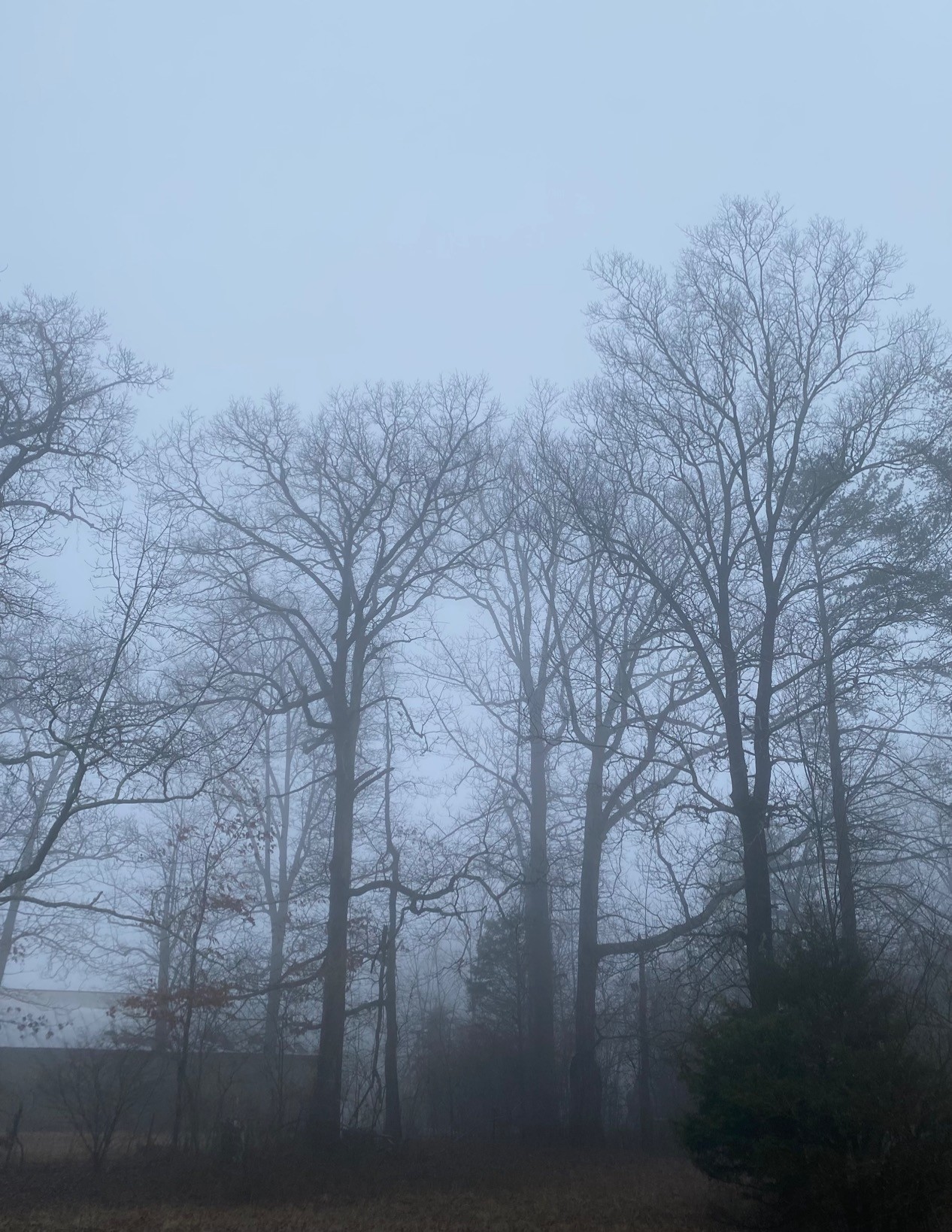 I like this photo, also, because it shows how blue everything looks in the fog. No filter here, just the eerie outside. #trees #takeawalk #outside #fog