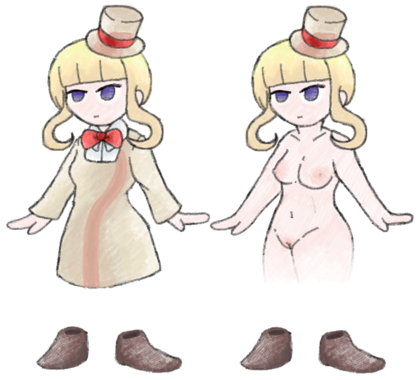 I made a Yume 2kki OC who was sorta just porn for the sole purpose of being able to fuck every NPC character I want her to because I'm a self-indulgent piece of shit👍. She's a tap dancer and she dances when you pay her 夢100, unlocking a wallpaper. Maybe I can make her react to some effects or something lol idk. She's around 160cm and has small breasts