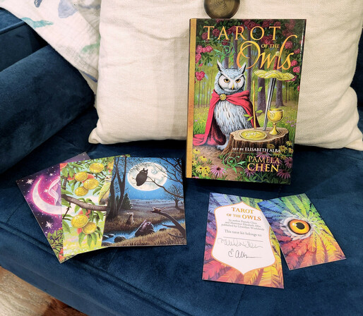 Tarot of the Owls is now available!! You can get it from the usual places (Llewellyn.com, Amazon, Bookdepository...) but I also have a few signed copies in my Etsy shop at https://www.llewellyn.com/product.php?ean=9780738768212! I will have more inventory soon. They're a sort of 'artist edition' with signed postcards, a vinyl sticker of the card back, plus a bookplate signed by both myself AND the author, Pamela Chen!