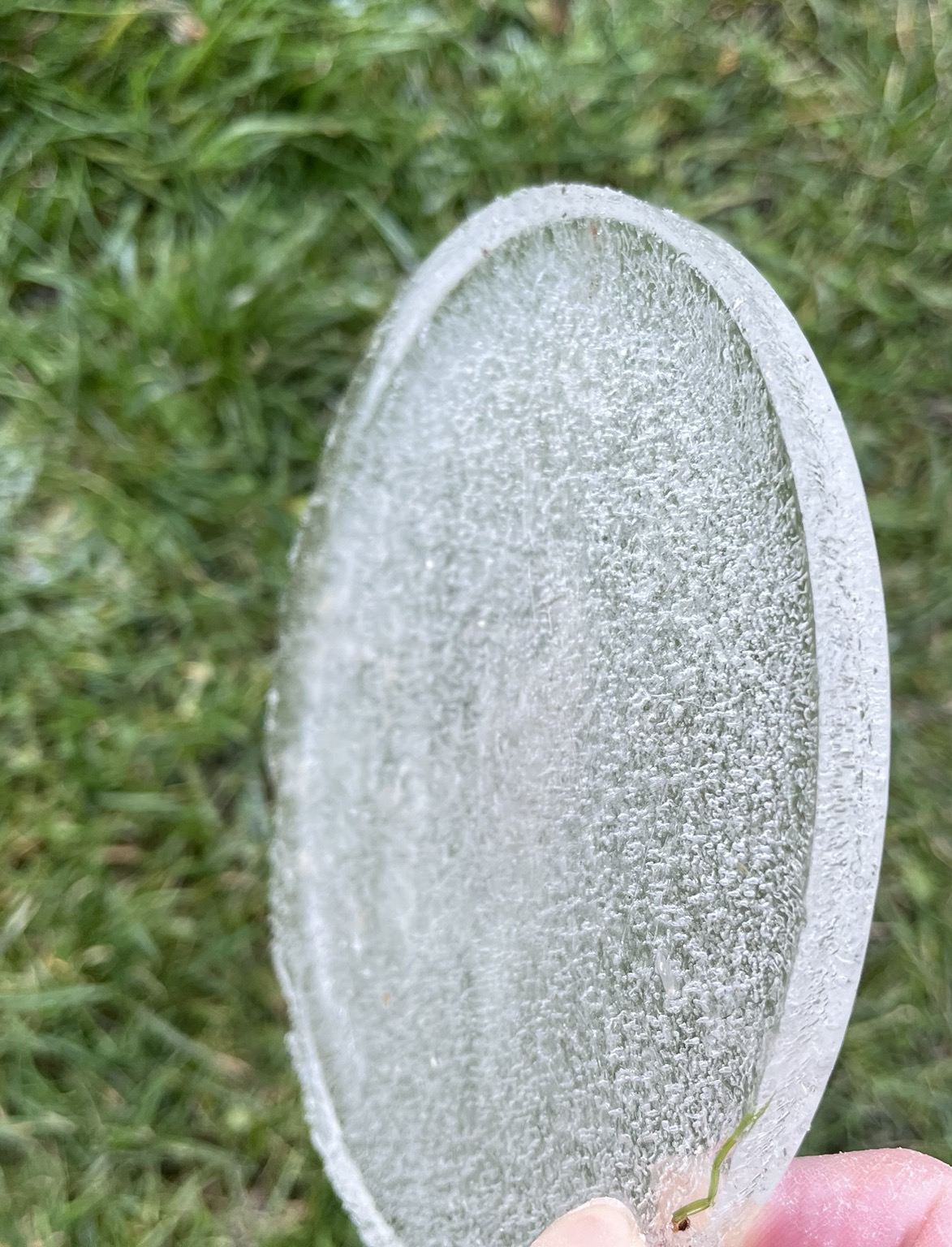The contents of the birdies’ water dish this morning (removed it & left it on the grass - it’s still there this evening. It never thawed. 😳).