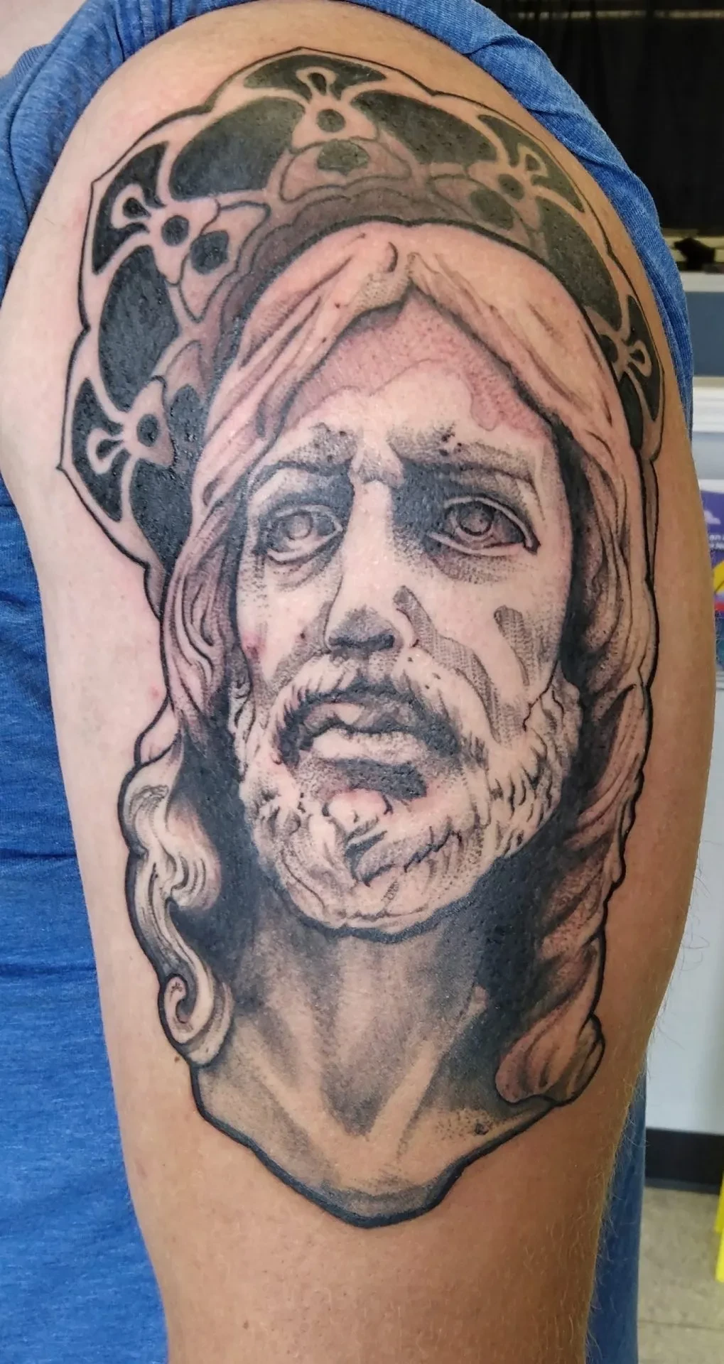 #portfolio #tattoo #jesus #religioustattoo #tattooartist #tattoosofmastodon #art #artist #mastoart