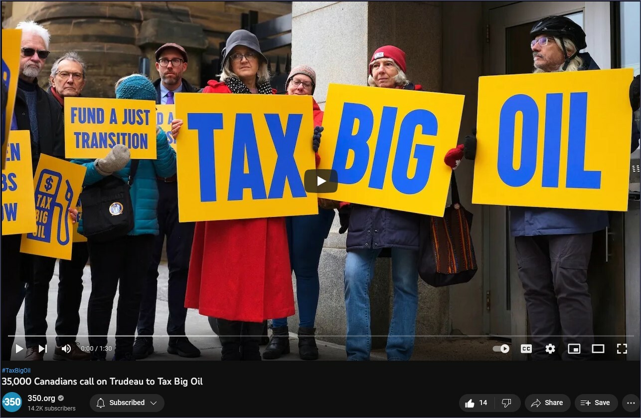 Polluters are making record profits while working people struggle with the cost of living and the climate crisis. Tell the Trudeau government to tax Big Oil's excess profits to fund a Just Transition to clean energy. Sign the @350Canada petition now: https://act.350.org/sign/tax-big-oil