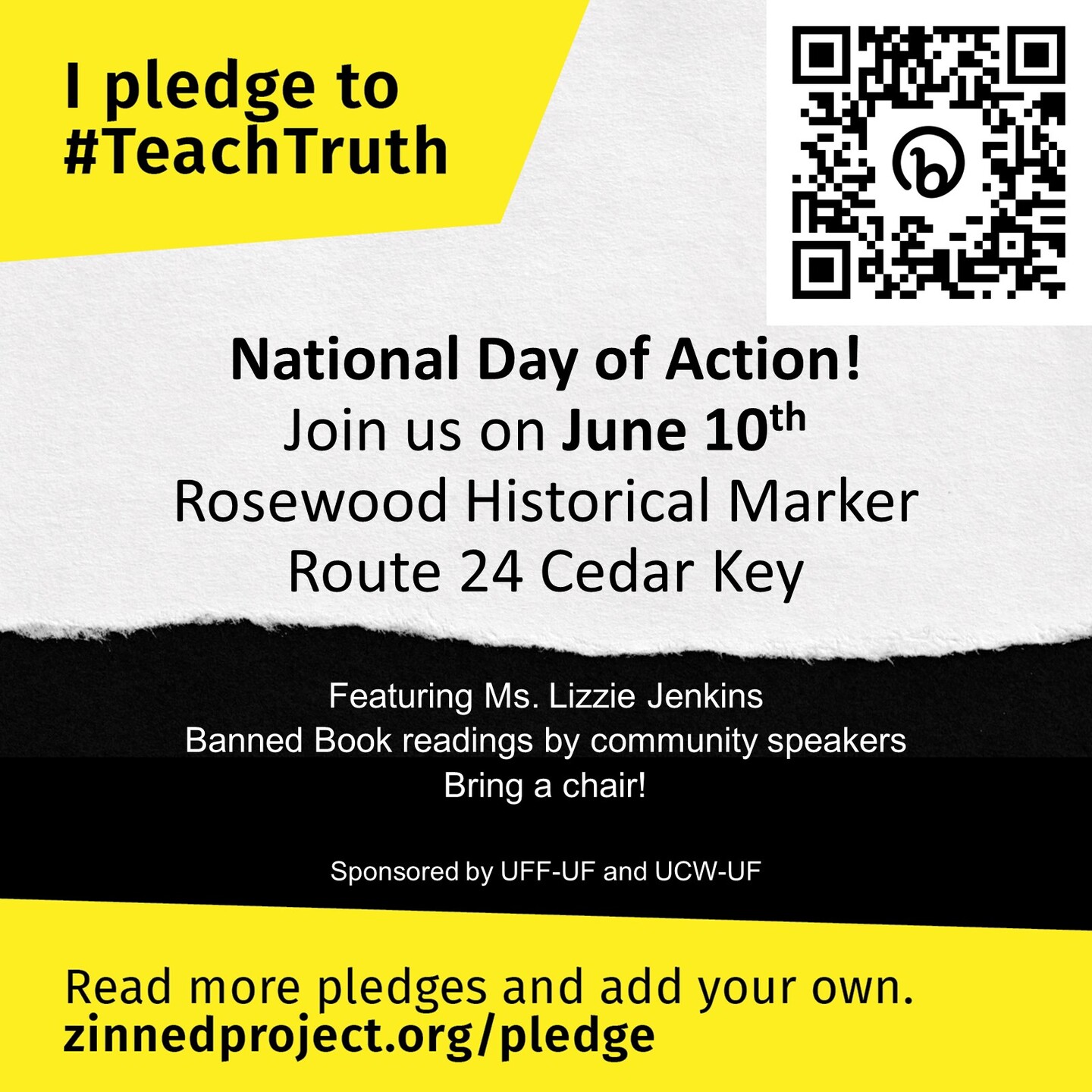 So, June 10th, I pledge to #TeachTruth and advocate for the #FreedomToLearn here in the North Central FL area. We are holding an event at the Rosewood Historical Marker at 11am on the 10th. We will have a wonderful speaker, the niece of a survivor of the Rosewood Massacre, and book readings. Come out, bring a friend, learn about Florida history, and advocate for teaching the truth to all. Register here: https://forms.gle/K5tMPu1WaLno6eh79