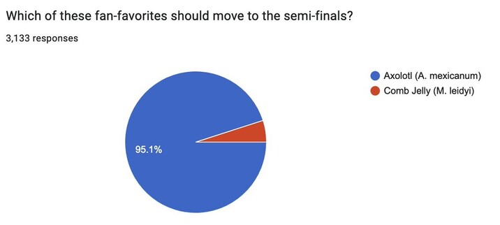 After four hours, it's hard to see how Comb Jelly can come back from this, without some serious voting effort from the ctenophore fans in the audience. http://go.mbl.edu/MarchMadnessVote