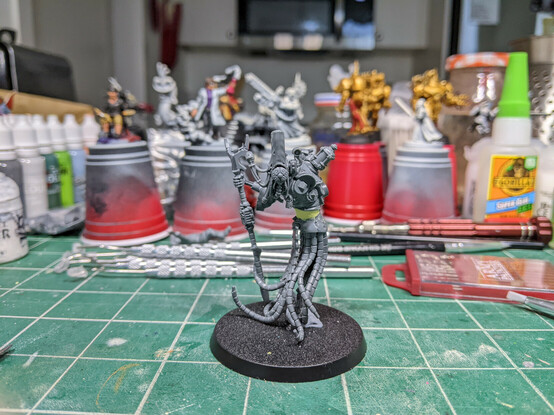 WIP on a kitbash I'm doing for a friend. She enjoys Warhammer from afar and is a fan of the Mechanicus and Necrons, so I'm making a xenarite for her!