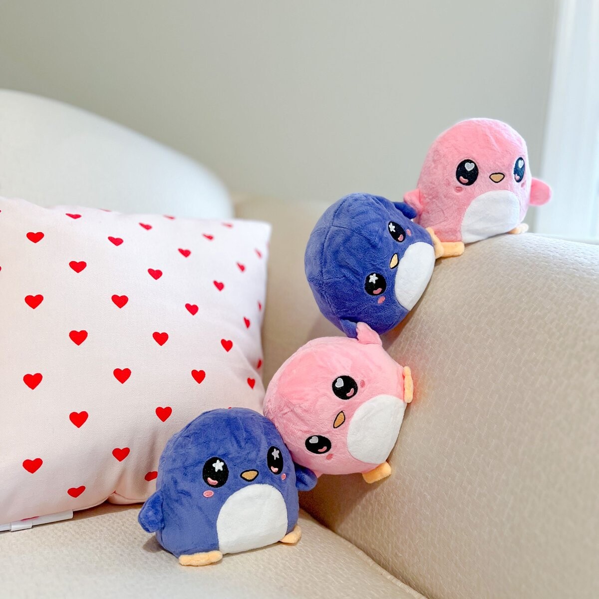crossing the couch requires lots of teamwork! ๐ง๐๐ these 2 NEW Reversible Penguin Plushmates are 30% off right now!!