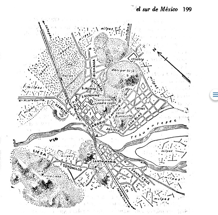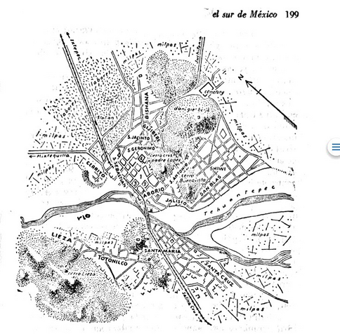 I found this tiny little map of #Tehuantepec made in the 1940s by Miguel Covarrubias, is cute but super useful as it shows the traditional barrio layout of the town. Also is I te resting how the neighborhoods at the west side of the river were not as connected with downtown as I thought.
