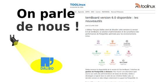 Ami⋅e⋅s #DBA, découvrez le résumé de #toolinux sur les nouveautés de la version 6.0 de #temBoard, un de nos outils #opensource pour #PostgreSQL ! => presse_temboard_v6