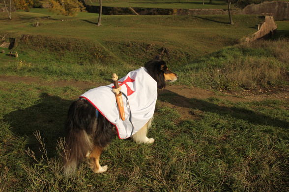 #dogInArmor #dogs #dogsofmastodon #dogsoftwitter #sword #armor #templar #knight #doggy #monsterhunter #cats #collie