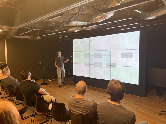 We have full house at Go meetup. Vaclav Broz started with talk about Temporal.io #go #meetup #prague #temporalio
