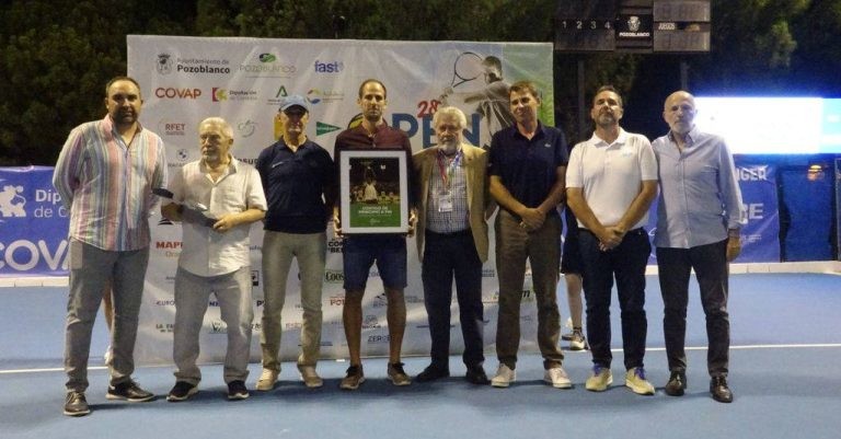El tenista marbellí Adrián Menéndez dirá adiós a casi veinte años de carrera en el Open Ciudad de Pozoblanco, un torneo que ganó en 2007 y que le catapultó en cu carrera profesional. Pero antes de que eso ocurra, se despidió en un emotivo acto rodeado de los suyos y del público pozoalbense, que tantas veces le ha apoyado en los muchos años que ha veni