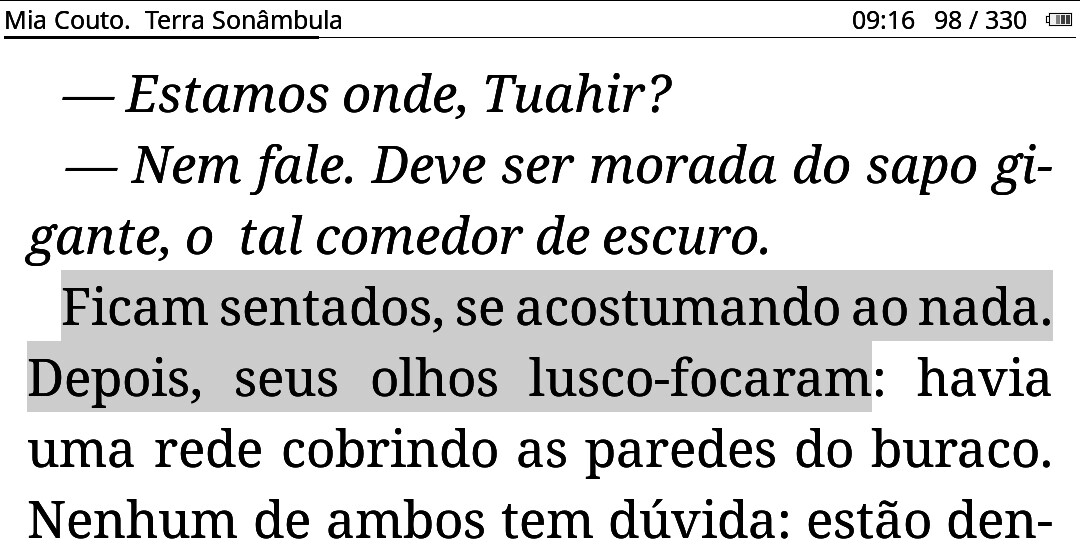 A minha leitura segue lenta, mas proveitosa. Se a narrativa não me prende, há muitos detalhes na linguagem e referências a tradições moçambicanas que sim prendem.