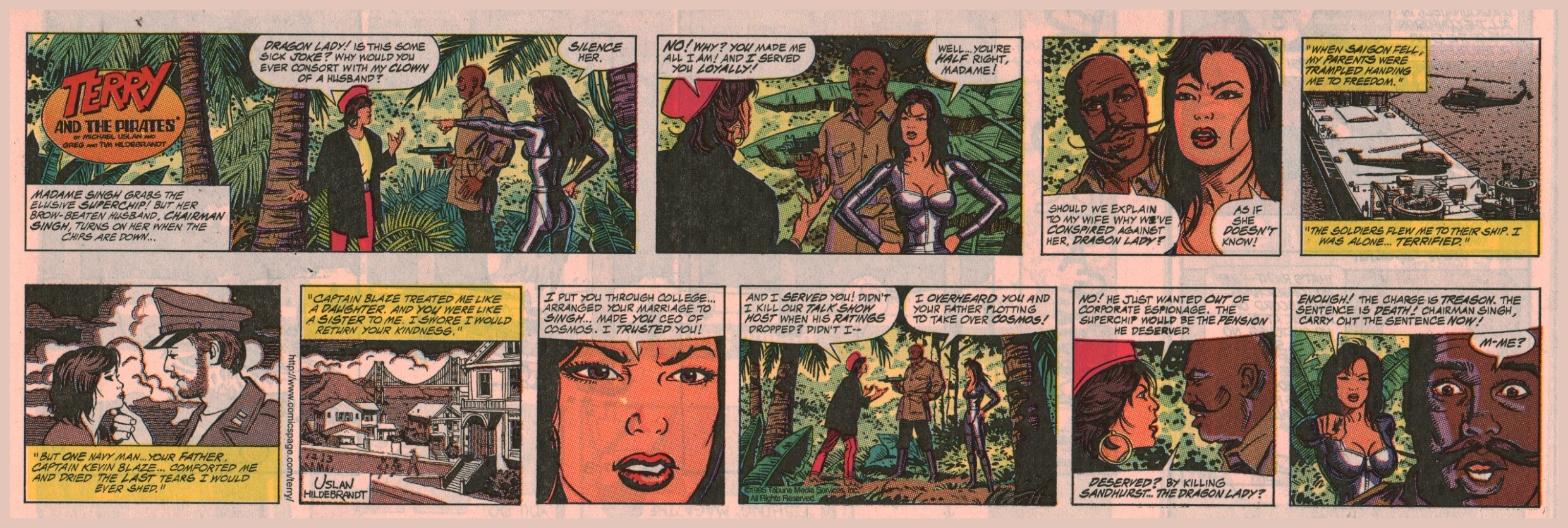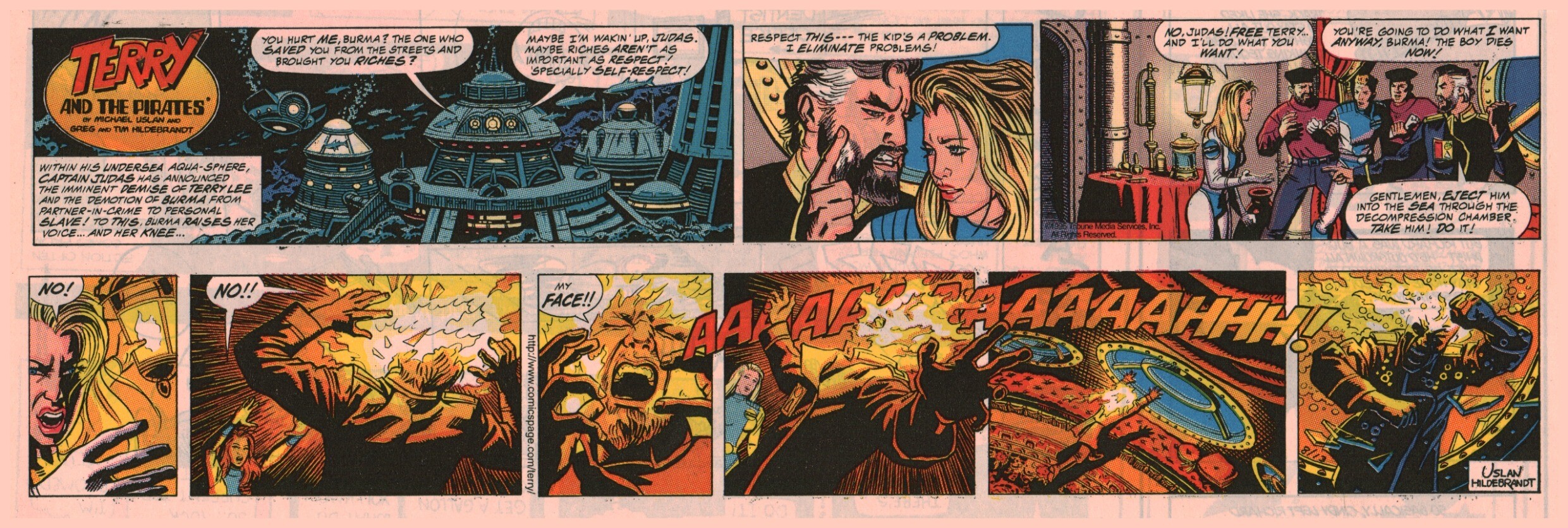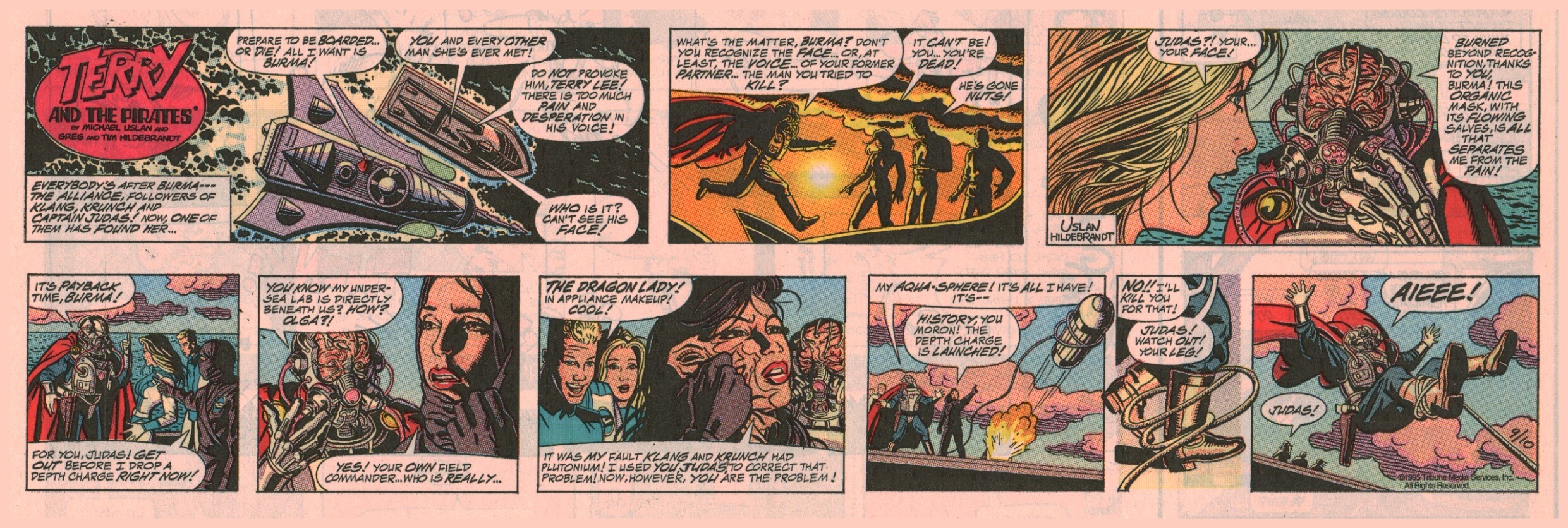 A deformed Captain Judas reappears, as does the Dragon Lady! Judas pulled overboard and DL and Burma are captured but not for long.