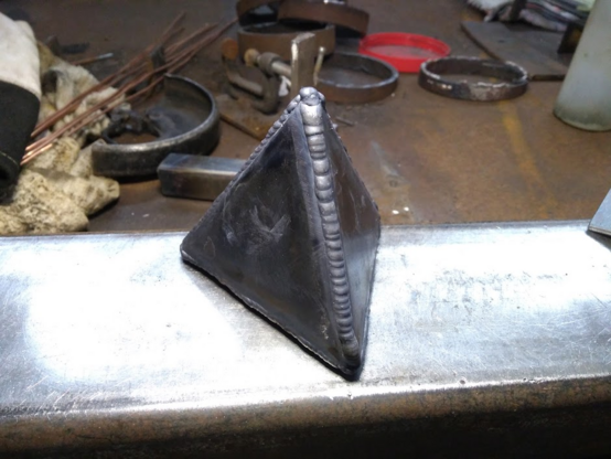 Next in the queue, a #tetrahedron. The Missus will get this for Christmas. The welds are capped with copper brazing, though you can't tell in this image. I'll give it a good polish this weekend.