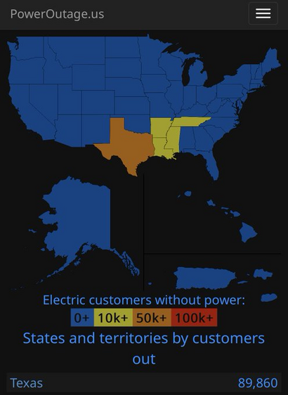California may have occasional brown-outs during summer air conditioning use or windstorms that could cause a wildfire from trees falling on power lines, but you won't freeze to death. 🥶 #TexasFreeze https://www.khou.com/article/weather/hard-freeze-warning-houston/285-a5d1f65e-3e04-453b-a208-765751822b8d