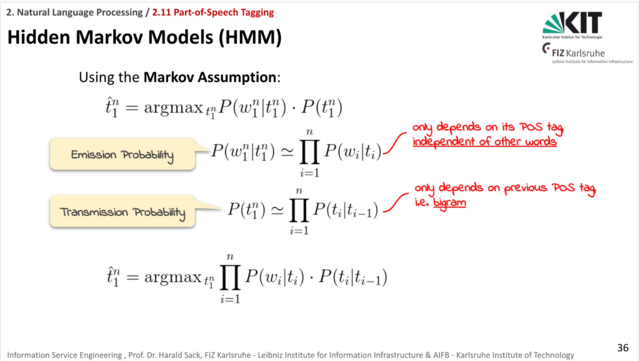 In the last #ise2023 lecture, we've tackled POS-tagging with the help of Hidden Markov Models. Again, we are leveraging probabilities gained from large text corpora (Maximum Likelihood Estimation), making some simplifications (Markov assumption, mutual independency assumption) to come up with approximations of emission and transmission probabilities for tag sequences