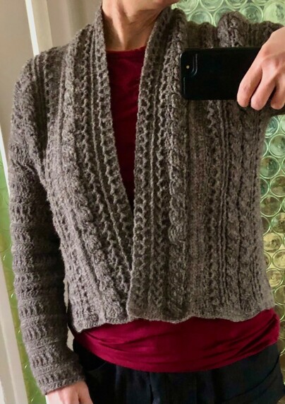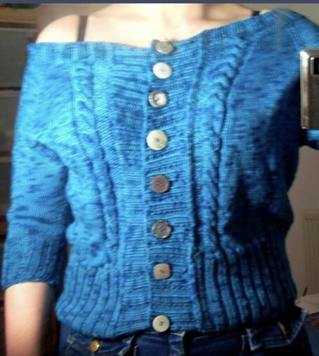 Pattern is Favorite Cardigan by Wendy Bernard. I made it out of Artyarns Supermerino and it was, indeed, my favourite cardigan. Very sad that my stupid, ineffectual thyroid robbed me of being able to wear it anymore 😕