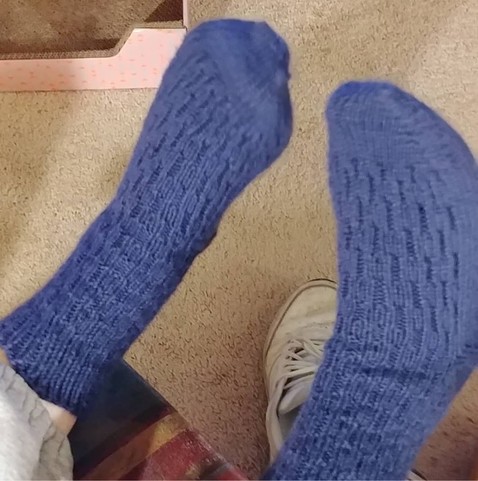 The pattern here is a simple one-one rib, shifted every 6 rows. Toe up, afterthought heel, Berrocco Vintage (wears like iron, machine wash and dry)