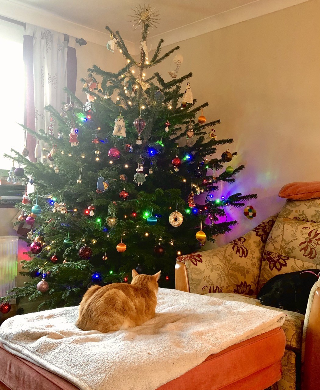 Here is a #GingetCat and a ChristmasTree. There is a #Labrador in there too. #ThankGodItsFriday