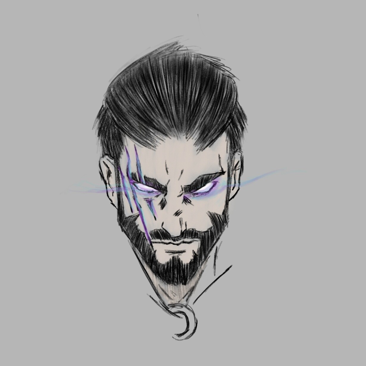 "Three long scars, carried on the left side of his face. A repulsing trait that made most feel uncomfortable for staring at him. The scars were thin and dark, etched on his skin. Their rough shape proof that no blade was responsible, but the sharpness of three claws, one passing over his left eye. Luckily, he still had both intact; striking violet, graded with an azure glow around the irides’edges."