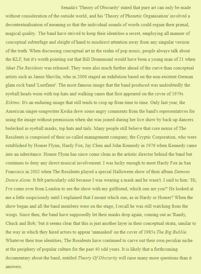 of Opacity: #The_Residents’ “Theory of Obscurity” c/o #N_Senada