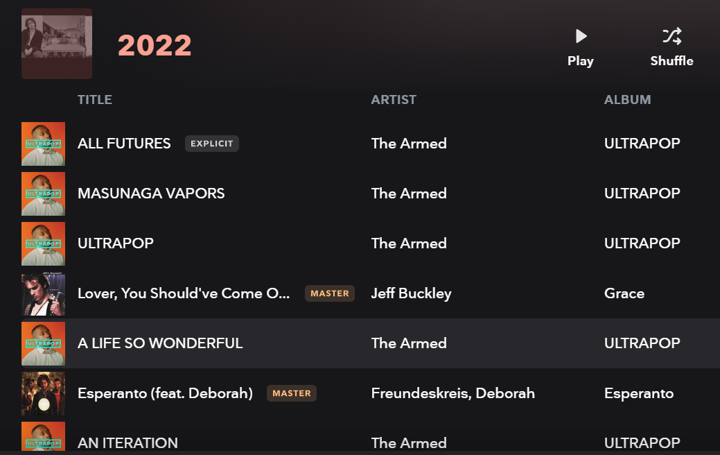 In 2022, I apparently listened to mostly one album. It's a very good album though