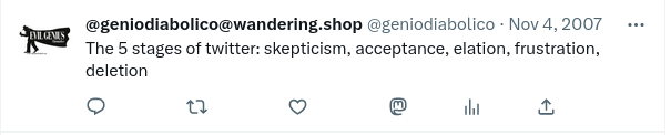 bird makeup's failure to relay Mastodon traffic back to the original accounts on #TheBadPlace marks it out as anti-social media in my book.