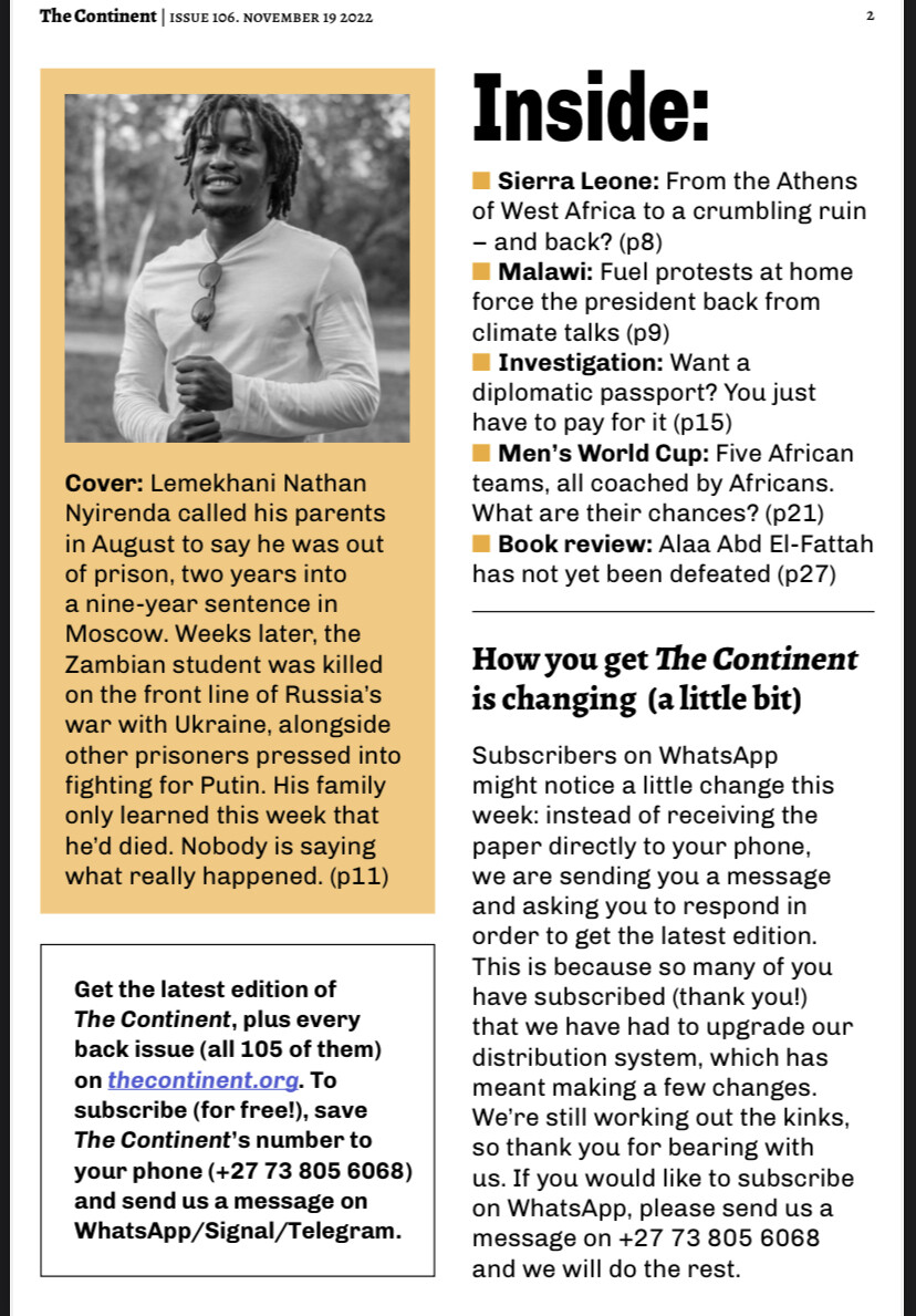 Just read the latest issue, which lands in my #SignalApp messages every Saturday and it never disappoints. Great digests and insights on the African continent. #QualityNews, easy to share, free to read. Subscribe here: https://www.thecontinent.org/