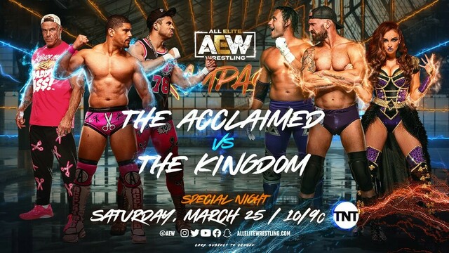 AEW: It’s #TheAcclaimed @PlatinumMax @Bowens_Official vs #TheKingdom @MattTaven @RealMikeBennett! Two of the top tag teams are set to battle it out THIS SATURDAY on a Special Night #AEWRampage at 10pm ET/9pm CT on @tntdrama!