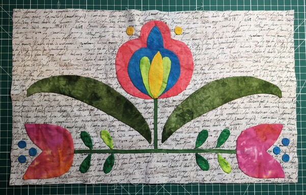 I have this appliqué block all laid out and ready for hand appliqué! #sarahfielkebom #thesecretgardenbom