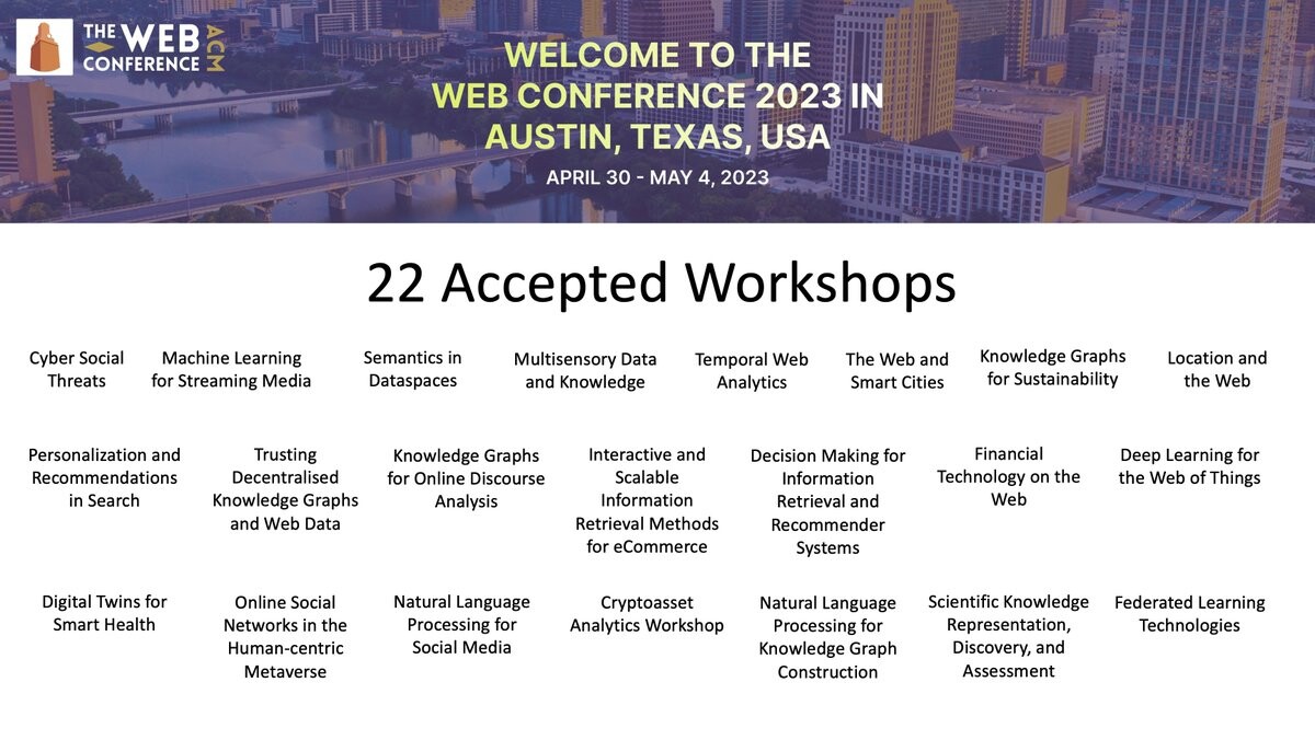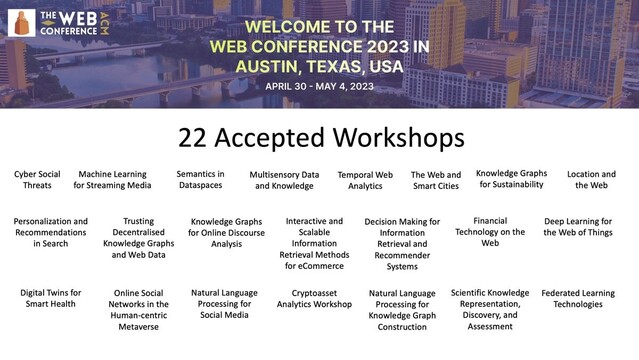 22 accepted workshops at #TheWebConf in Texas, USA on April 30 - May 4 2023: https://www2023.thewebconf.org/program/workshops/