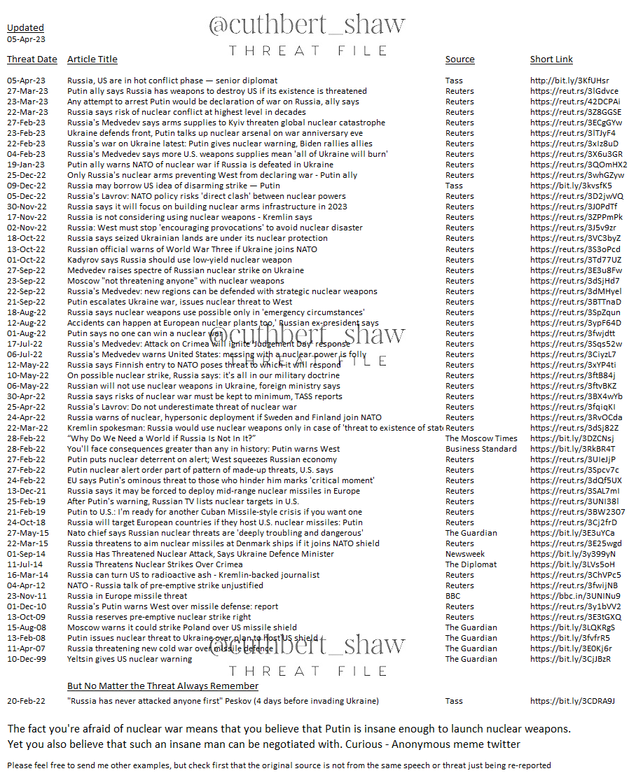 when ralph #thiele mal wieder die atomsau auf ntv rauslässt, bitte ganz in ruhe diese liste betrachten. #putin|s nukleares säbelrasseln ist nichts als psychologische kriegführung, die in deutschland besonders gut funktioniert. auch und gerade bei militärs.