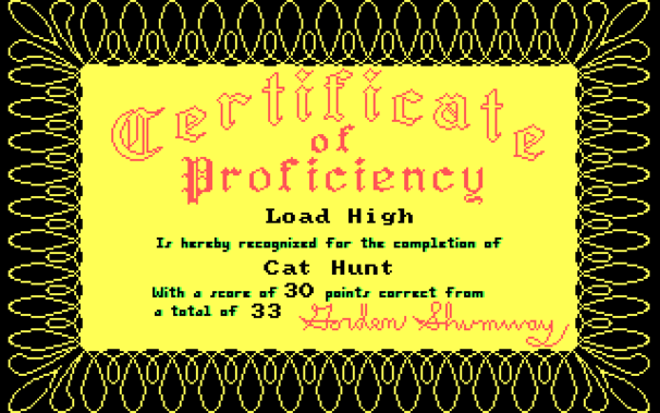 Of course I have to proudly show you what I achieved in the game. Behold, my Certificate of Proficiency for cat hunting!