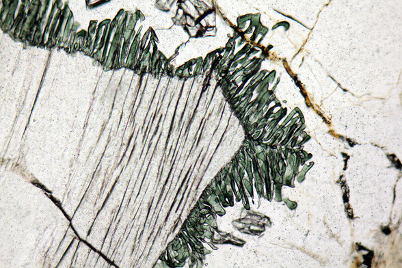 Blue #sapphirine is well represented: here a reaction texture between sillimanite and cordierite, in thin section.