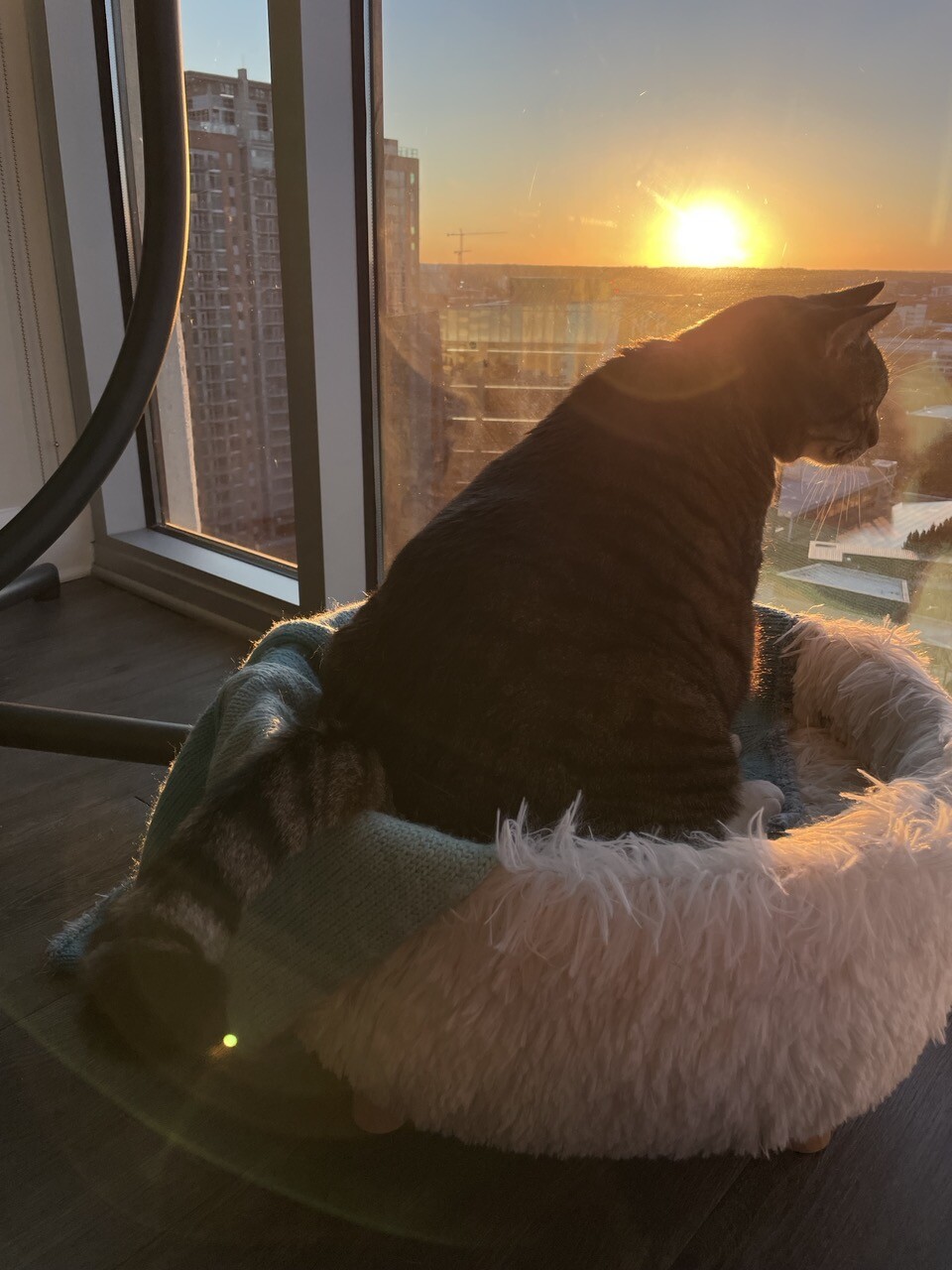 #catsofmastodon #sunset #catcontent #goldenhour #thiscatischonky #sunsets