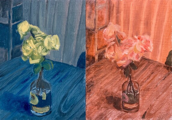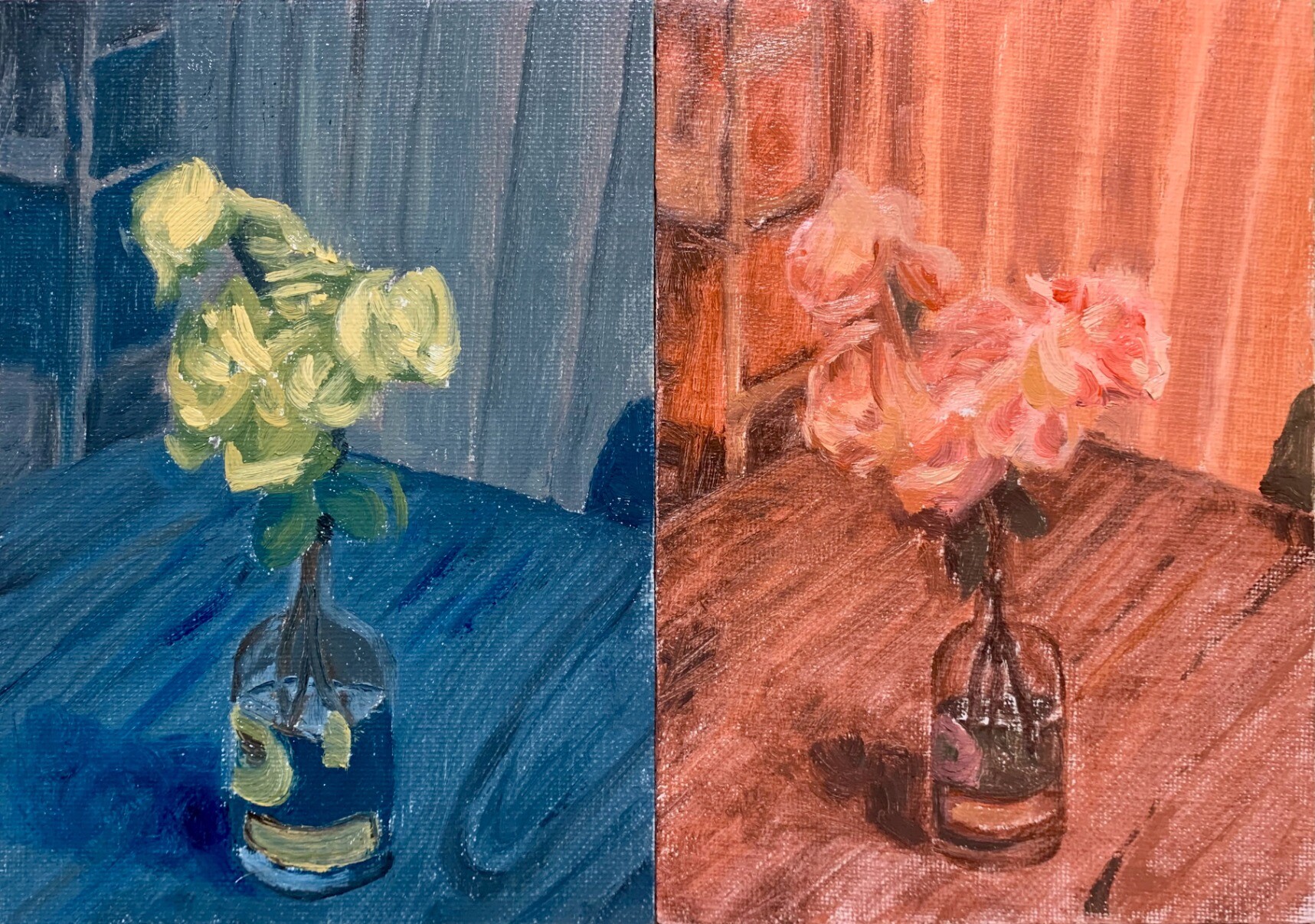 Created a couple of thumbnails for an upcoming project in two very different palettes (cool/warm). I'm still unsure which direction I will go, but so many lessons were learned to take forward into the final painting!