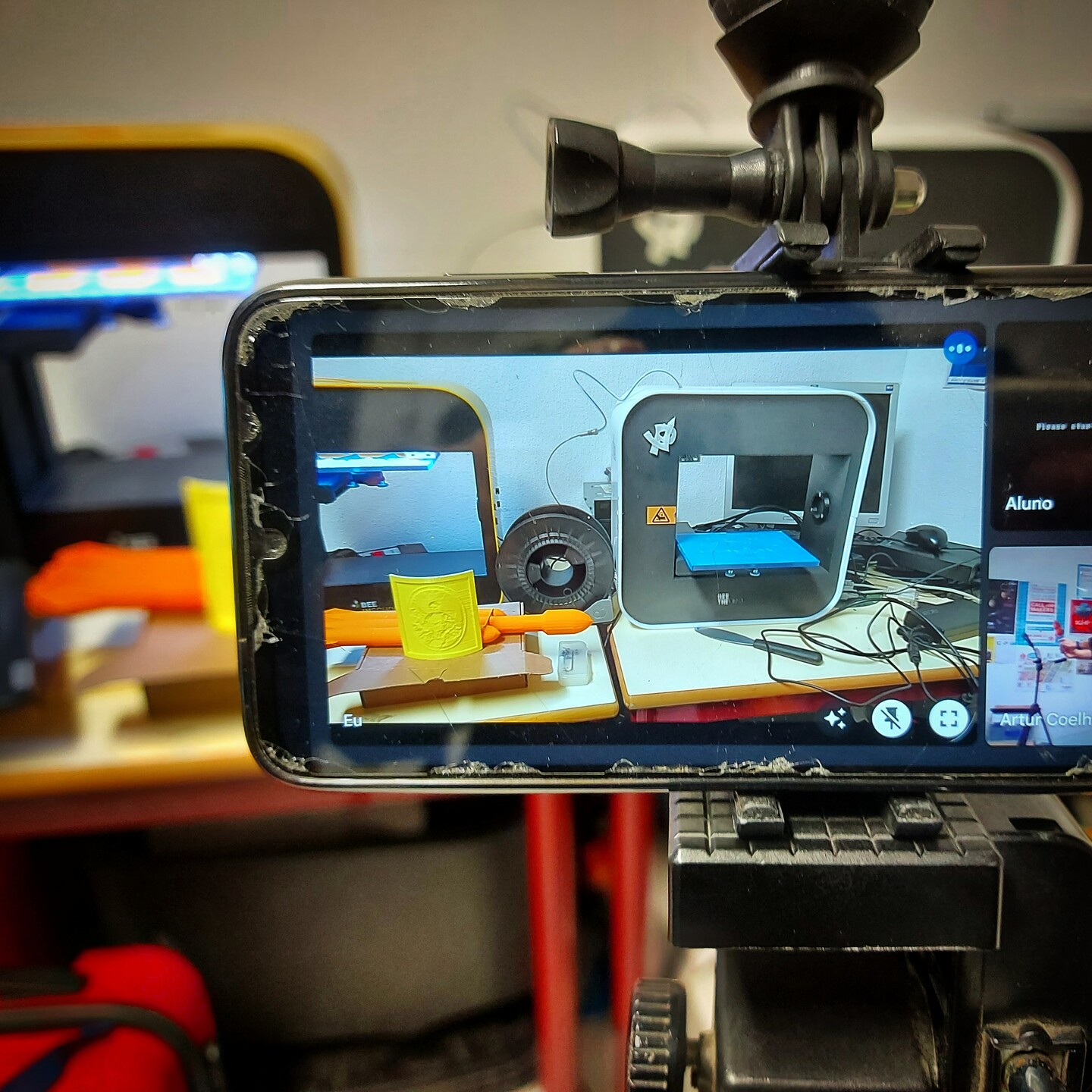 O gabinete PTD não é o espaço mais acolhedor para uma sessão online sobre impressão 3D, nestes momentos é mais giro fazer no Makerspace do @crpjosefanha . Mas anda-se de volta de um projeto Erasmus, em modo produção, e tive de raptar temporariamente a impressora do espaço Maker, ou, como perguntam os alunos, "o que é que fez à nossa impressora" (adorei o "nossa"). Sessão hard, para professores da zona de Sines, espero não os ter traumatizado. #3dprinting #aevendadopinheiro #ticem3d #education